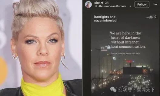 (当好莱坞大多数明星保持沉默时,歌手Pink 为伊朗人民发声)